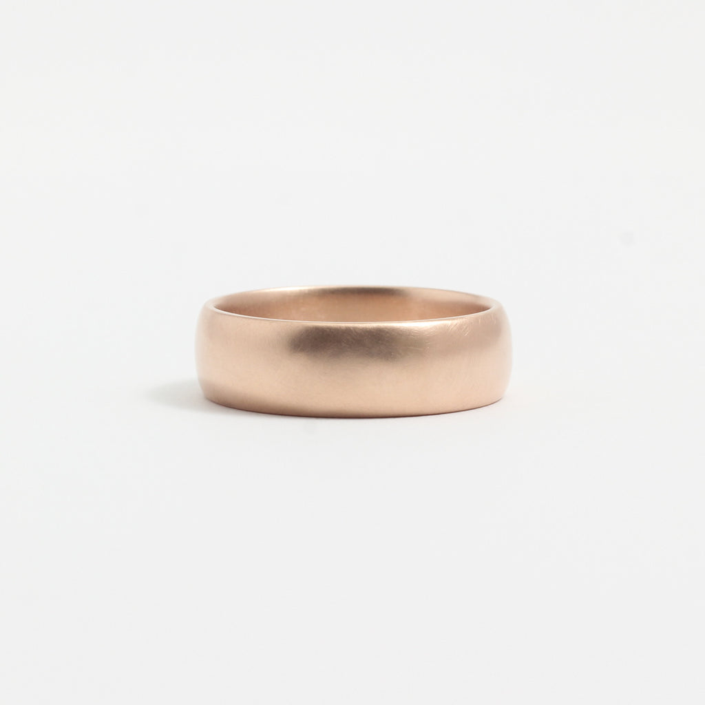 The warm tones of rose gold make it a beautiful choice for any skin tone. With its rounded outside and lightly curved inside, this ring is super comfy. It's 6mm wide and 1.6mm thick.